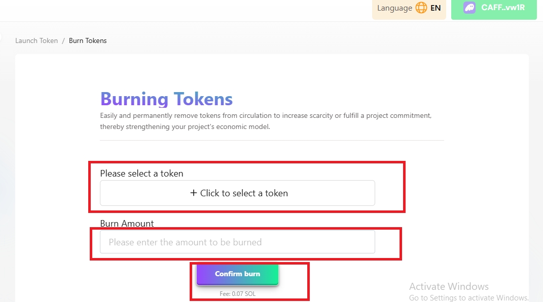 On Solana, projects usually burn their LP tokens to gain community trust and allow their tokens to be traded freely. Burning your LP tokens will also reflect on platforms like Dexscreener, displaying a padlock on your token page.
